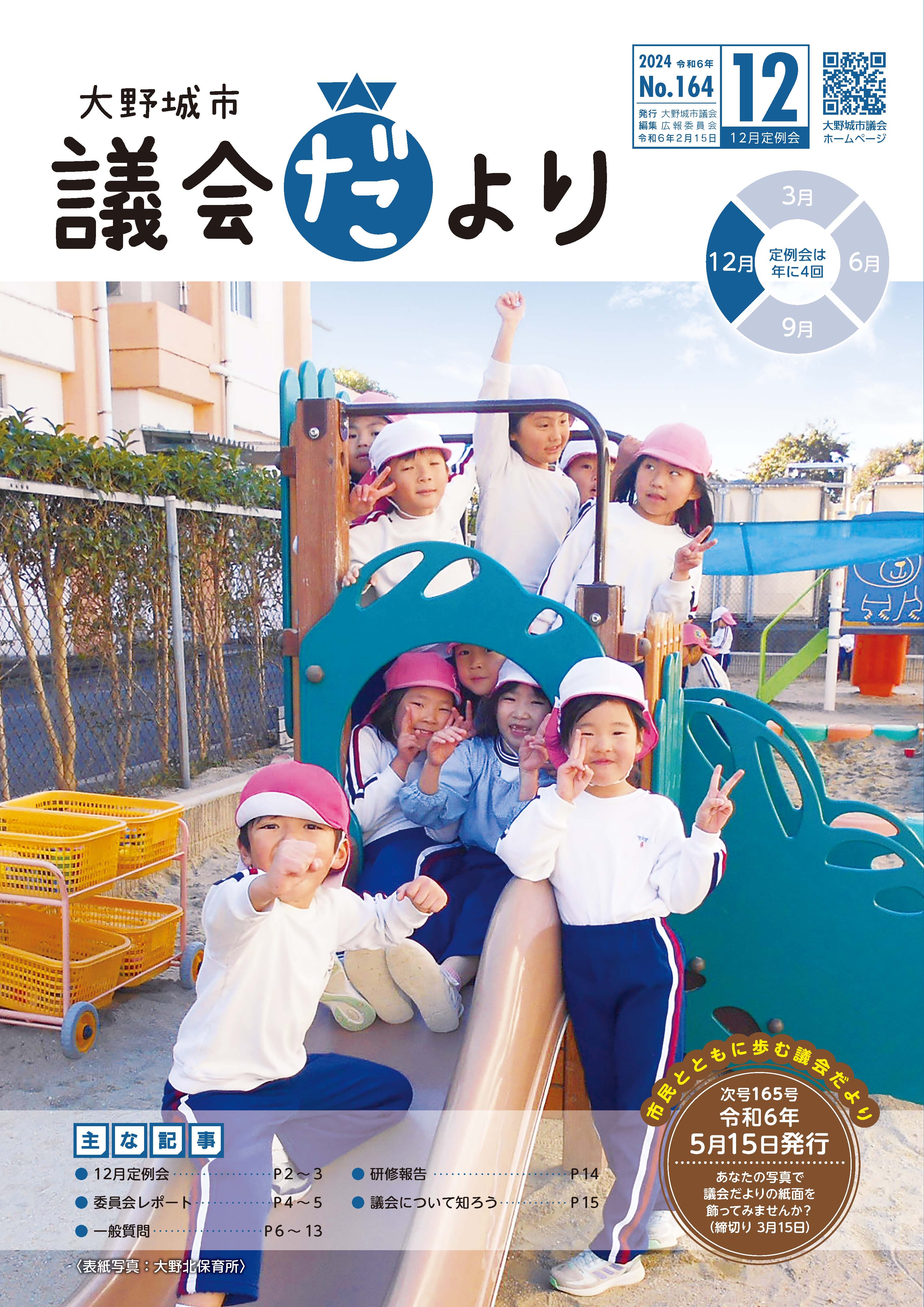 議会だより 最終更新日:2026年2月13日 (ID:7360) 印刷 最新号 No.172(令和8年2月15日)(PDF:6.42メガバイト) 過去の議会だより No.171(令和7年12月15日)(PDF:7.09メガバイト) No.170(令和7年8月15日)(PDF:10.35メガバイト) No.169(令和7年6月1日)(PDF:15.31メガバイト) No.168(令和7年2月15日)(PDF:3.8メガバイト) No.167(令和6年11月15日)(PDF:5.14メガバイト) No.166(令和6年8月15日)(PDF:7.23メガバイト) No.165(令和6年5月15日)(PDF:4.74メガバイト) 議会だより165号(5月15日号)において、下記のとおり誤りがありました。訂正し、お詫び申し上げます。訂正箇所裏表紙 作品紹介 短歌 乙金台 泉 滿夫さん誤新緑の皐月さみどり採火して四王寺に大文字残像正新緑の皐月さみどり採火しし四王寺山に大文字残像 No.164(令和6年2月15日)(PDF:4.84メガバイト) No.163(令和5年11月15日)(PDF:4.6メガバイト) 議会だより163号(11月15日号)において、下記のとおり誤りがありました。訂正し、お詫び申し上げます。訂正箇所P13 一般質問 原田 真光議員 問2つ目誤踏切の警報機と遮断機の時間に関する法的な基準はのために、本市が行っている施策について伺う正踏切の警報機と遮断機の時間に関する法的な基準は・ウェブサイト上では訂正済みのものを掲載しております。 No.162(令和5年8月15日)(PDF:6.26メガバイト) No.161(令和5年6月1日)(PDF:5.36メガバイト) No.160(令和5年2月15日)(PDF:8.58メガバイト) No.159(令和4年11月15日)(PDF:7.52メガバイト) No.158(令和4年8月15日)(PDF:6.32メガバイト) No.157(令和4年5月15日)(PDF:4.43メガバイト) No.156(令和4年2月15日)(PDF:6.97メガバイト) No.155(令和3年12月15日)(PDF:7.13メガバイト) No.154(令和3年8月15日)(PDF:8.26メガバイト) No.153(令和3年6月1日)(PDF:5.23メガバイト) No.152(令和3年2月15日)(PDF:7.68メガバイト) No.151(令和2年11月15日)(PDF:7.62メガバイト) No.150(令和2年8月15日)(PDF:4.48メガバイト) No.149(令和2年5月15日)(PDF:7.93メガバイト) No.148(令和2年2月15日)(PDF:6.35メガバイト) No.147(令和元年11月15日)(PDF:3.74メガバイト) 議会報告会案内号(令和元年10月15日)(PDF:1.59メガバイト) No.146(令和元年8月15日)(PDF:3.03メガバイト) No.145(令和元年6月1日)(PDF:5.32メガバイト) No.144(平成31年2月15日)(PDF:7.84メガバイト) No.143(平成30年11月15日)(PDF:6.13メガバイト) 議会報告会案内号(平成30年10月15日) (PDF:2.64メガバイト) No.142(平成30年8月15日)(PDF:4.89メガバイト) No.141(平成30年5月15日)(PDF:5.19メガバイト) No.140(平成30年2月15日)(PDF:5.76メガバイト) No.139(平成29年12月15日)(PDF:5.88メガバイト) 号外 議会報告会を開催します(平成29年10月15日) (PDF:1.34メガバイト) No.138(平成29年8月15日)(PDF:6.71メガバイト) No.137(平成29年6月1日)(PDF:5.12メガバイト) No.136(平成29年2月15日) (PDF:5.87メガバイト) No.135(平成28年11月15日)(PDF:7.41メガバイト) 号外 議会報告会を開催します(平成28年10月15日)(PDF:927キロバイト) No.134(平成28年8月15日)(PDF:8.03メガバイト) No.133(平成28年5月15日)(PDF:8.82メガバイト) No.132(平成28年2月15日)(PDF:7.28メガバイト) No.131(平成27年11月15日)(PDF:8.06メガバイト) No.130(平成27年8月15日)(PDF:5.54メガバイト) No.129(平成27年6月1日)(PDF:7.58メガバイト) No.128(平成27年2月15日)(PDF:7.07メガバイト) No.127(平成26年11月15日)(PDF:2.61メガバイト) No.126(平成26年8月15日)(PDF:2.62メガバイト) No.125(平成26年5月15日)(PDF:5.08メガバイト) No.124(平成26年2月15日)(PDF:5.47メガバイト) No.123(平成25年12月15日)(PDF:15.09メガバイト) No.122(平成25年8月15日)(PDF:4.65メガバイト) No.121(平成25年5月15日)(PDF:2.79メガバイト) No.120(平成25年2月15日)(PDF:3.81メガバイト)