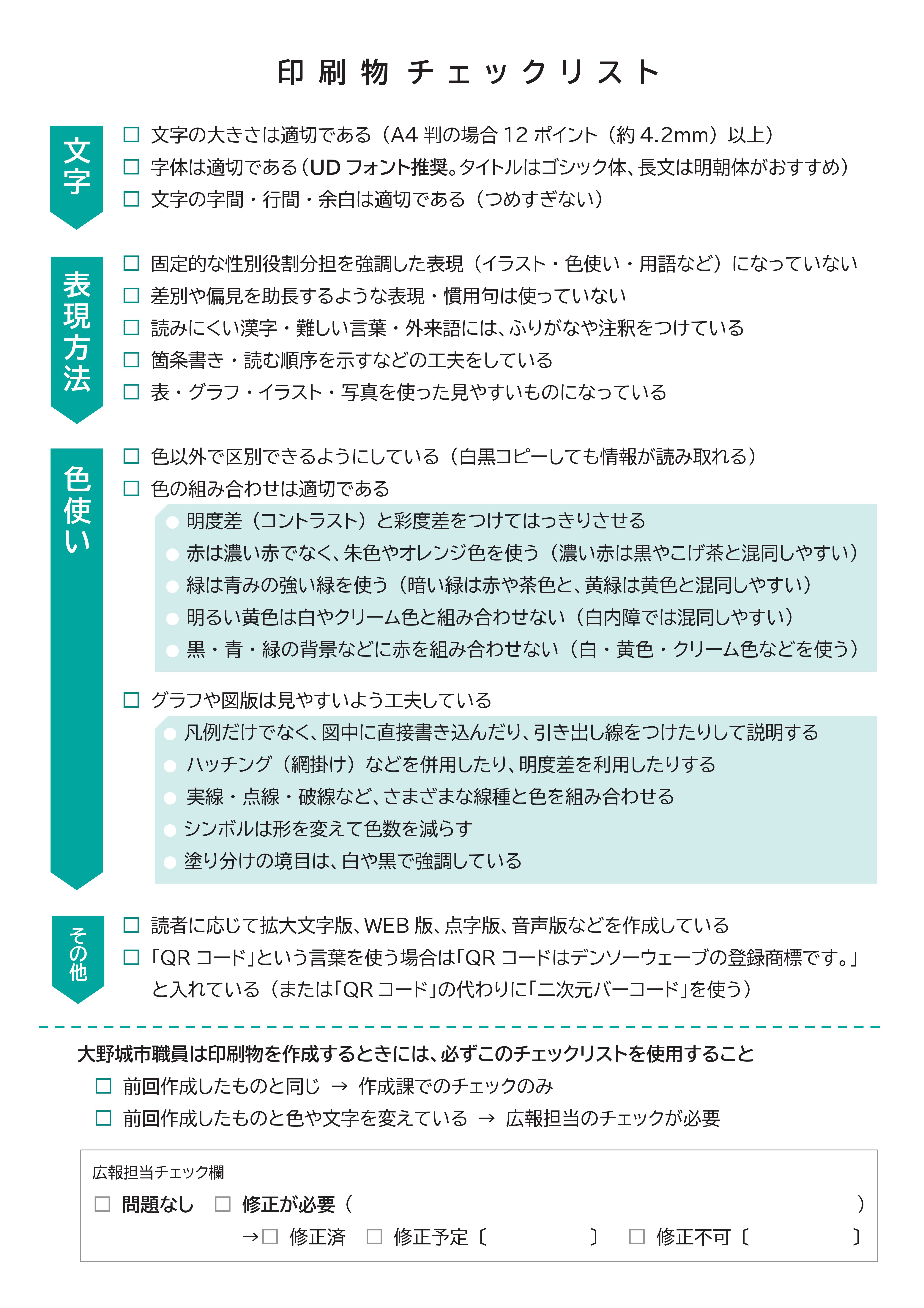 そこで、市が発行する印刷物は、このチェックリストを使って確認しています。